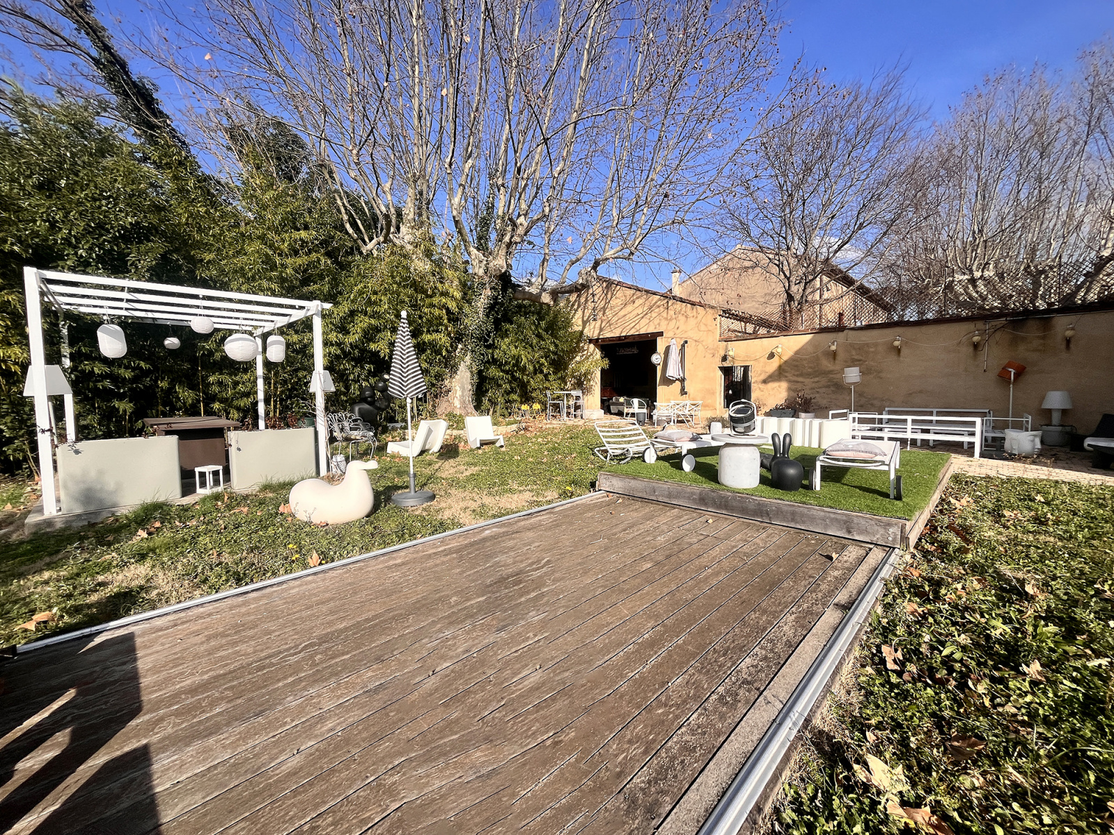 Les espaces extérieurs charmants et aérés se completent d'un espace Sauna, d'une piscine avec couverture en dur et de différents espaces de détente.