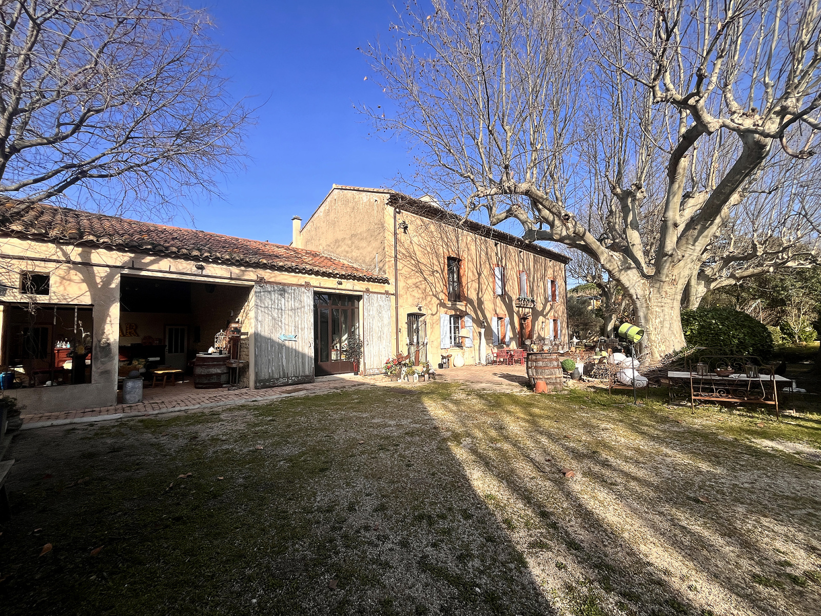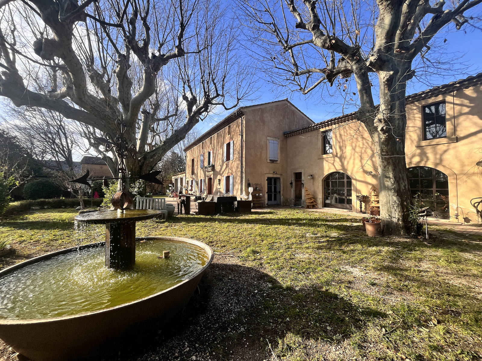 Carpentras (84200)Superbe Mas en parfait état où toutes les rénovations ont été réalisées dans le respect du charme de l'ancien et d'une modernité de qualité (baies acier - géothermie - toiture et isolation...) et situé à 10 mn à pied du centre ville de Carpentras sur un terrain de presque 1 ha clos que l'on découvre au bout d'une impasse oubliée.