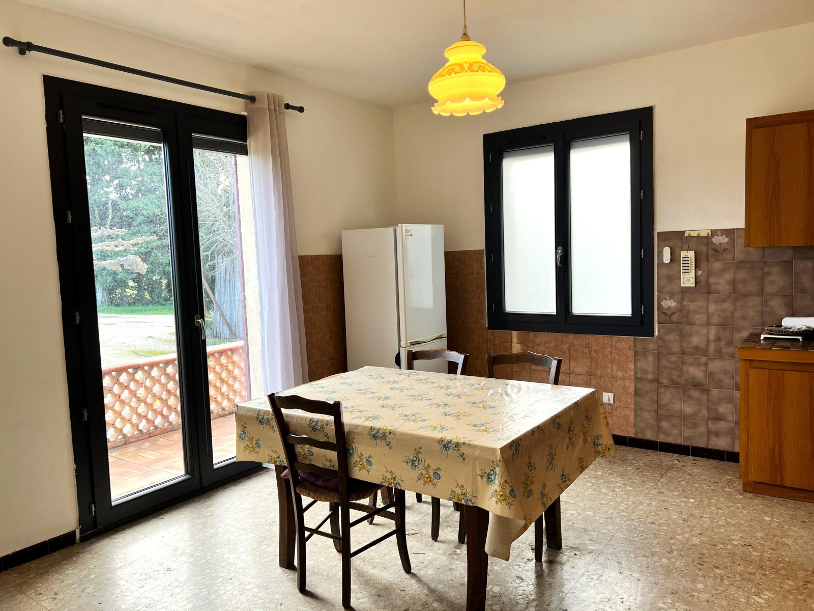 LG Immobilier vous propose cette villa T4 de 107 m², idéalement desservie par les axes routiers, offrant un accès rapide et pratique tout en restant proche de Carpentras. Construite en 1978, elle conviendra parfaitement à une famille ou à des particuliers recherchant avant tout une belle surface foncière et un véritable potentiel d’exploitation. La maison se compose d’un salon de 29,6 m², d’une cuisine séparée avec accès direct à la terrasse, de trois chambres climatisées et d’une salle d’eau. Les fenêtres récentes en aluminium double vitrage, équipées de volets roulants, assurent un confort thermique et une isolation appréciables. Le logement offre des aménagements facilitant l'accessibilité aux PMR. Un garage complète l’ensemble. Le véritable atout du bien réside dans son terrain classé en zone agricole. Cette situation offre de réelles perspectives pour des particuliers souhaitant disposer d’une grande surface extérieure. Le terrain permet notamment l’installation de chevaux à usage privé, l’accueil d’animaux ou le développement d’activités compatibles avec la réglementation agricole en vigueur. Une opportunité intéressante pour concrétiser un projet personnel nécessitant de l’espace et une vraie liberté d’aménagement. Pour plus d’informations ou organiser une visite, contactez LG Immobilier.