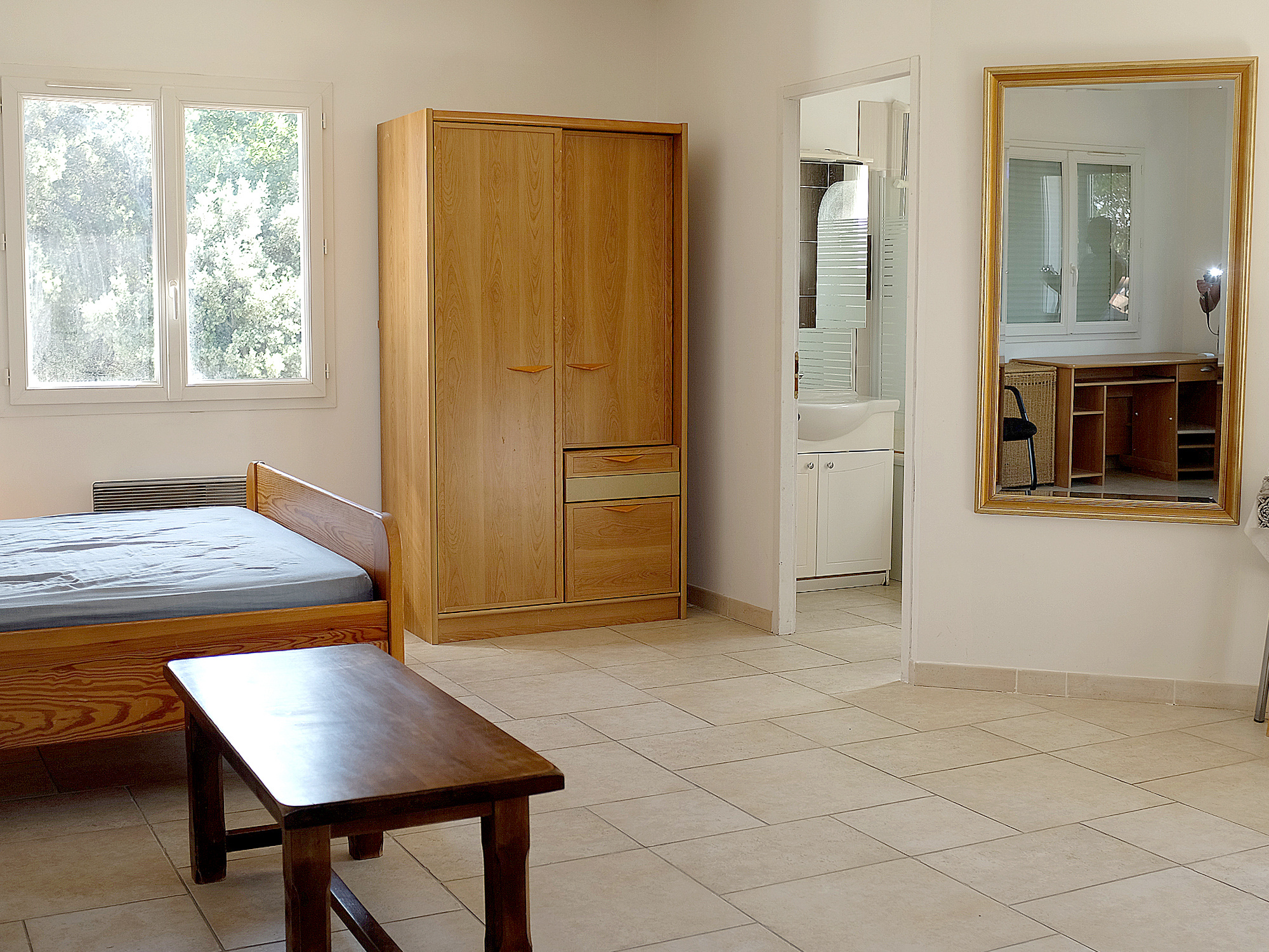Au RDC - Cuisine indépendante, 2 chambres dont une donnant directement sur la terrasse ainsi qu'un un bureau / Chambre d'amis 1 salle d'eau et wc indépendant. A l'étage, une très vaste suite parentale avec salle d'eau.