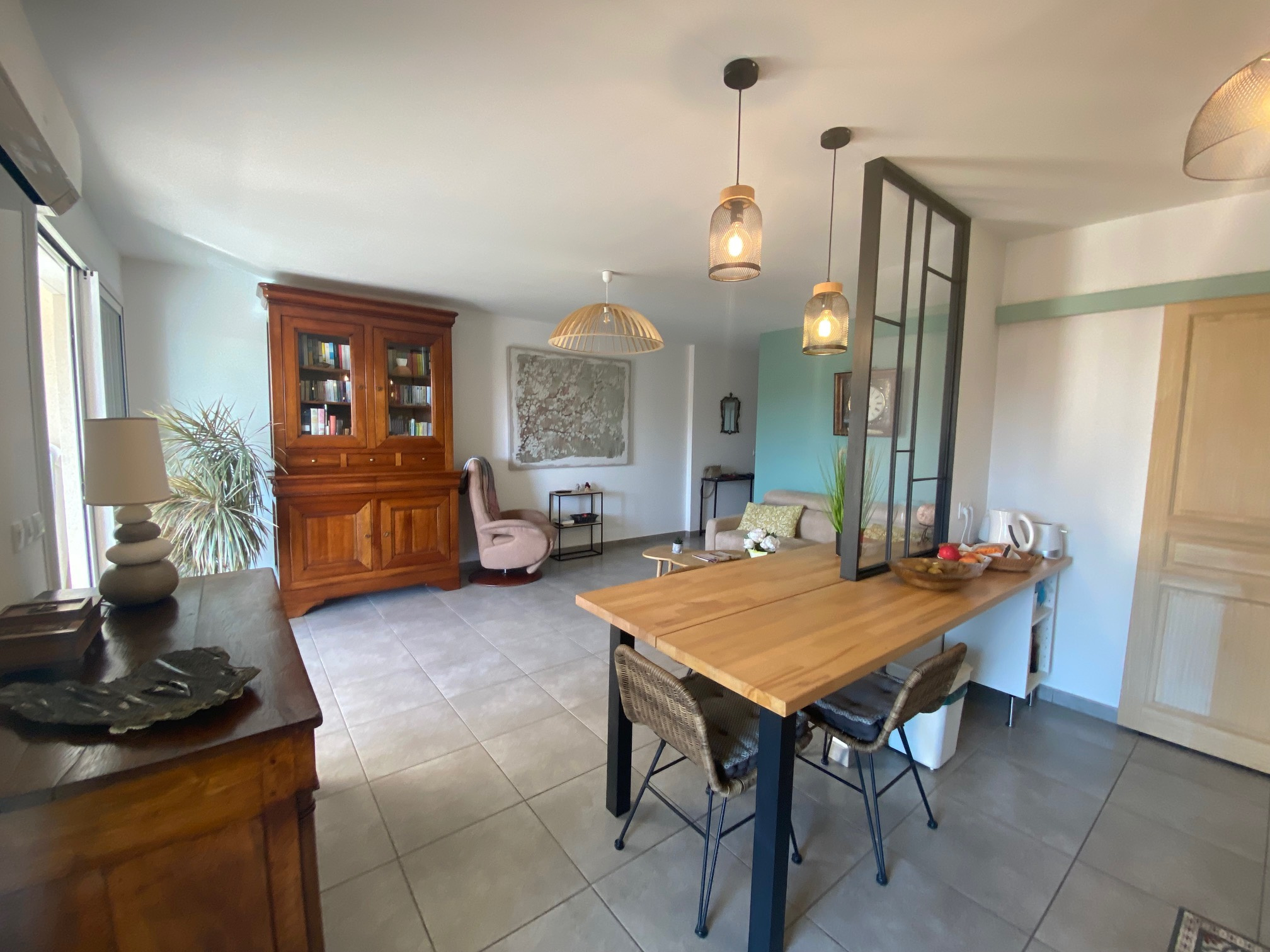 Le Thor (84250)Très bel appartement 3 pièces lumineux et de très bon goût au premier étage avec ascenseur et terrasse dans résidence sécurisée. Proche des commodités ( gare, écoles, commerces). Hall d'entrée et vestiaire, belle pièce de vie et cuisine semi-separée d'environ 29 m², le tout donnant sur une belle terrasse de 14 m² env., buanderie-cellier, toilette séparée, deux chambres avec placard, une salle d'eau . Nombreux rangements. Garage et place de parking dans une résidence de 14 appartements seulement.... Charges de copropriété environ 325 € par trimestre, DPE en cours. A voir absolument !