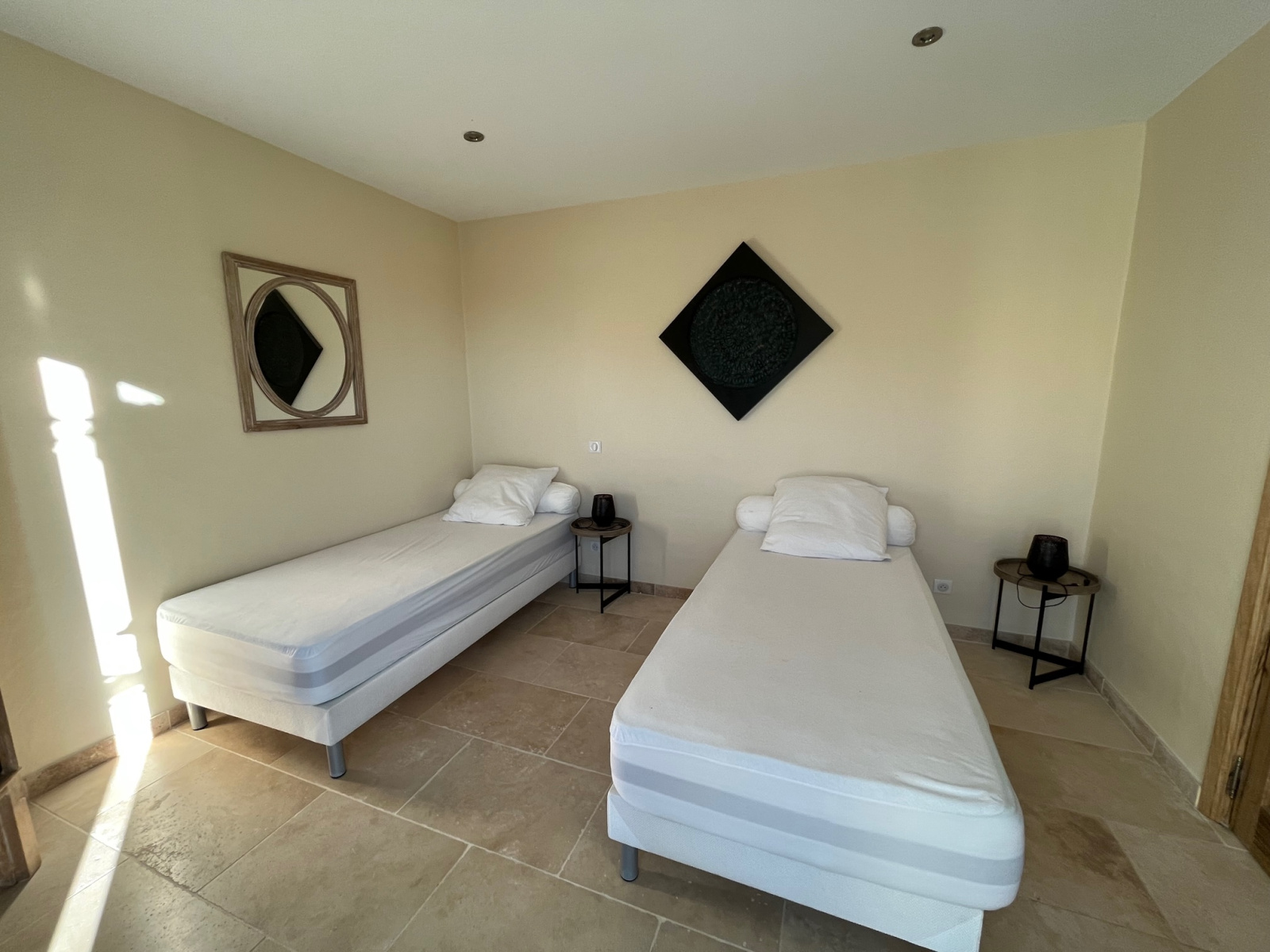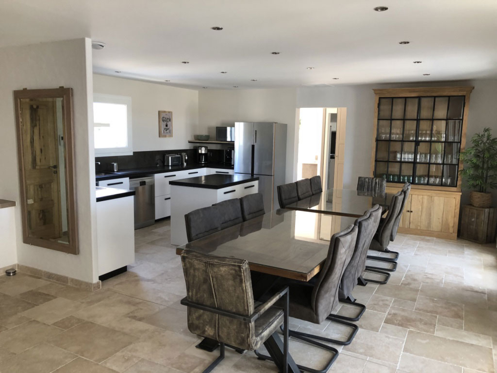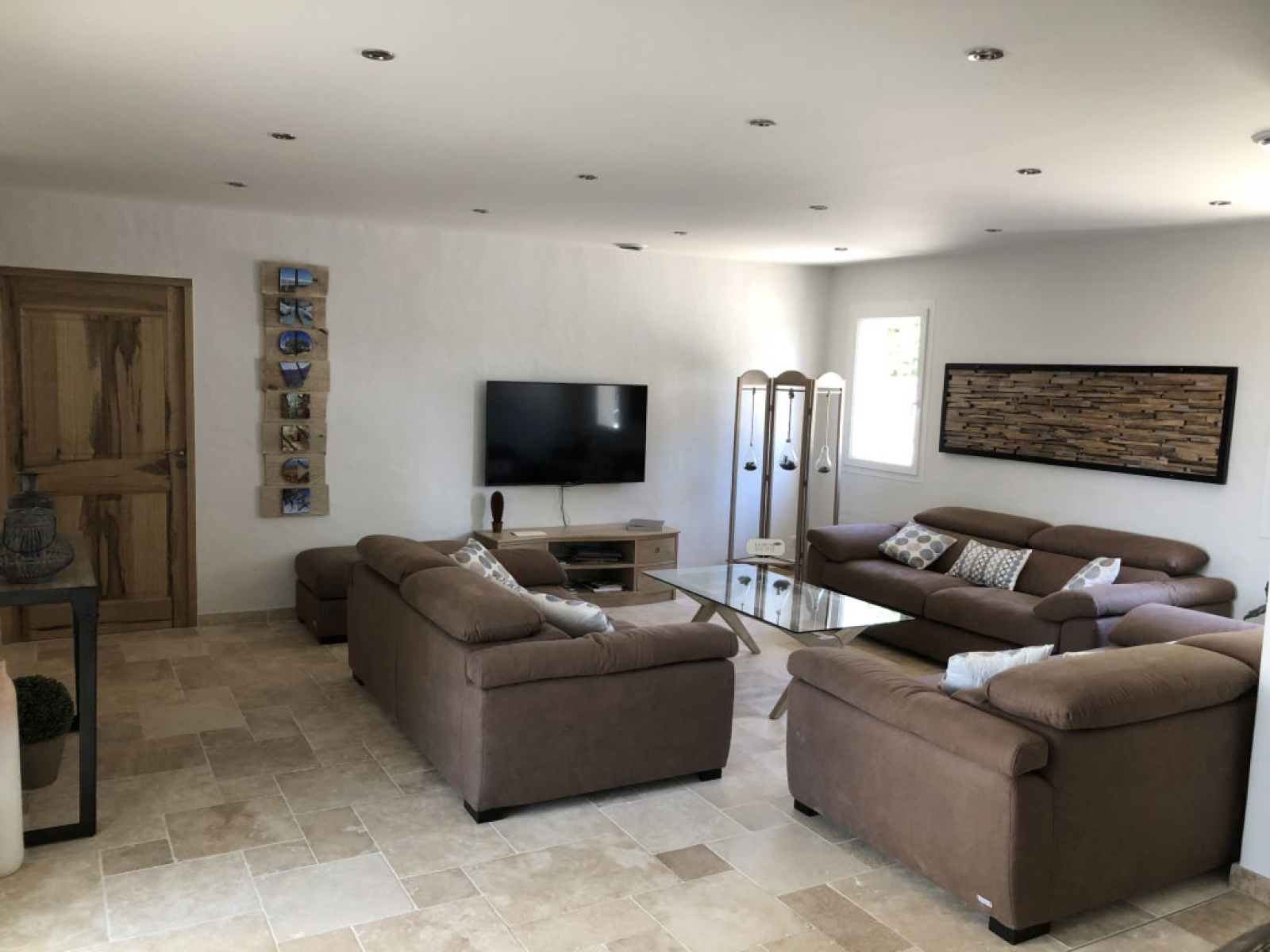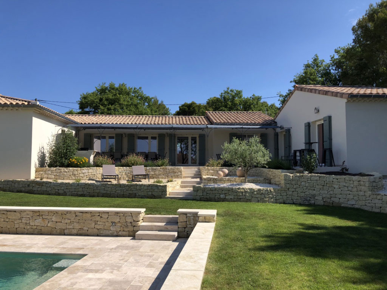 Mazan (84380)SOUS COMPROMIS LG IMMOBILIER - Villa de plain pied offrant un séjour d'env.67m² avec cuisine ouverte, hall, 3 chambres et un coin TV, plus une buanderie. Plus 2 chambres accessibles depuis la terrasse. Chaque chambre est équipée de sa propre salle d'eau, wc.