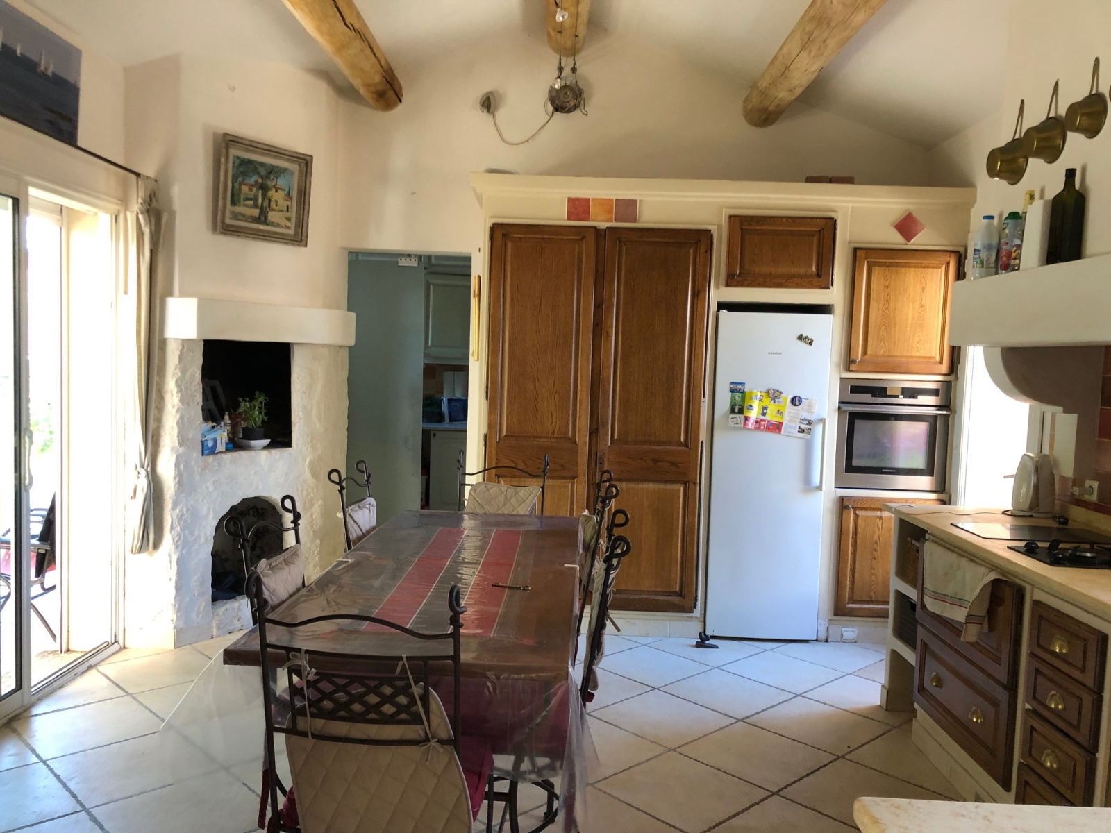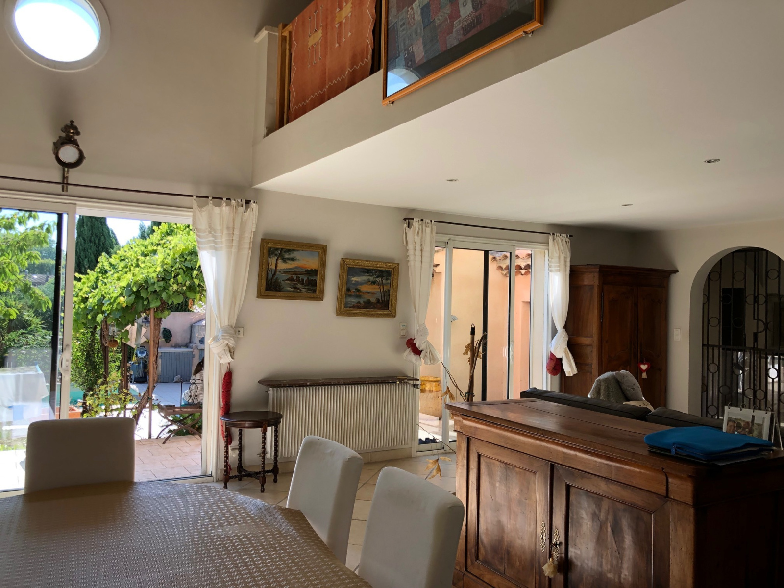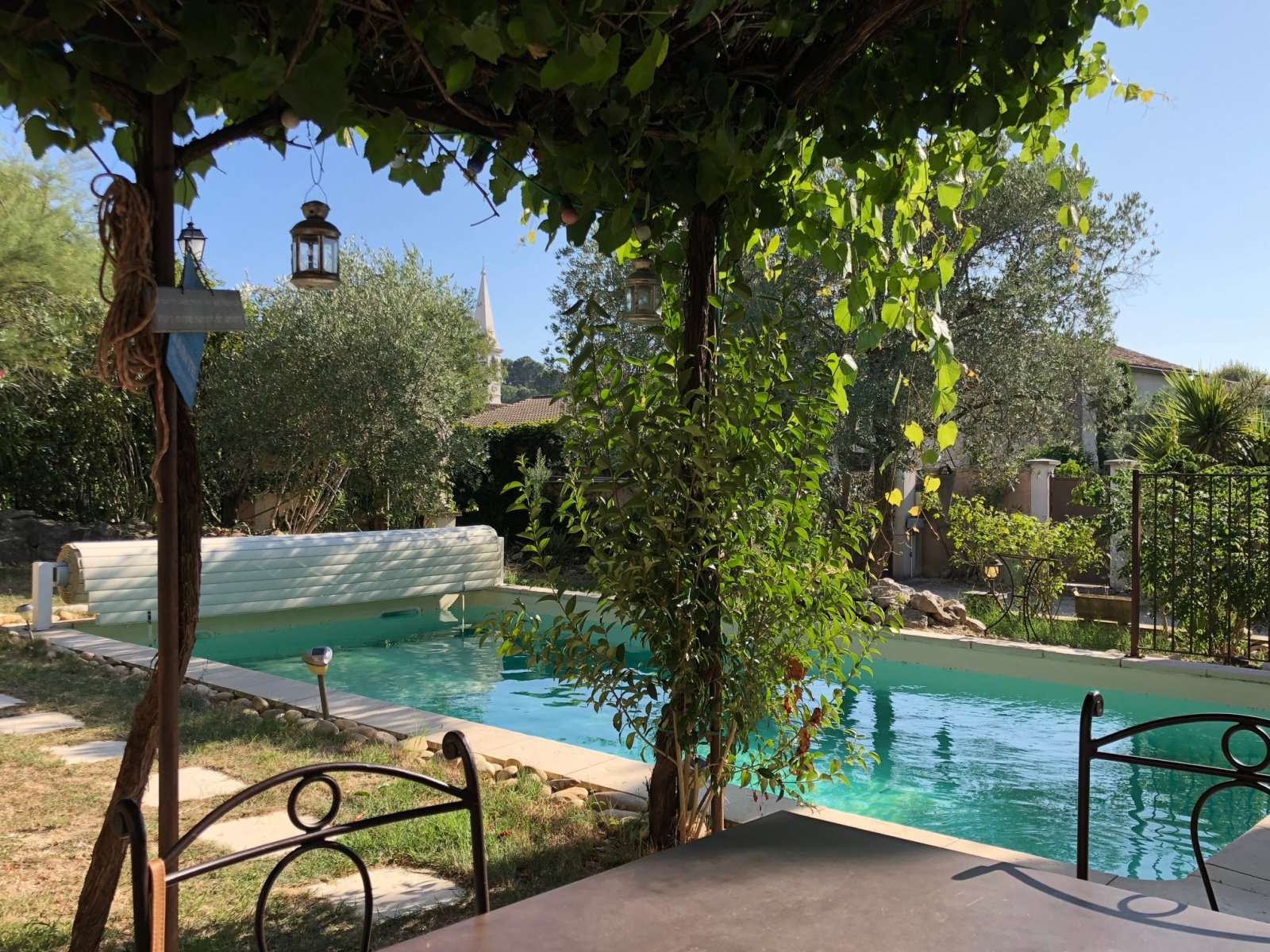 Le jardin privé s’articule avec de nombreuses terrasses autour de la piscine et un patio d'env.65m². Belles prestations : plafonds rampants et poutres apparentes, cheminée en pierres avec insert, baies coulissantes, l’eau du canal, un portail automatique avec portillon, des oliviers, palmiers et autres essences locales, donnant un cachet atypique et chaleureux à ce bien, à 2 pas des commerces du village.
