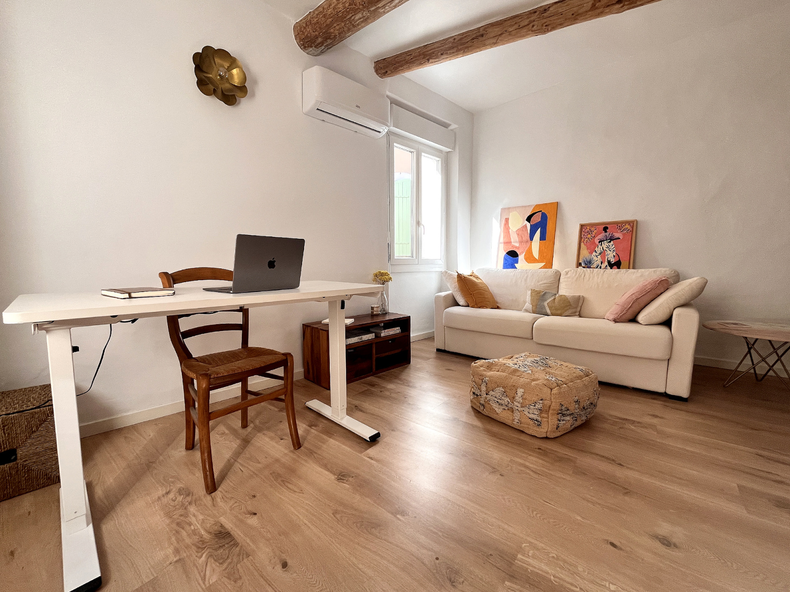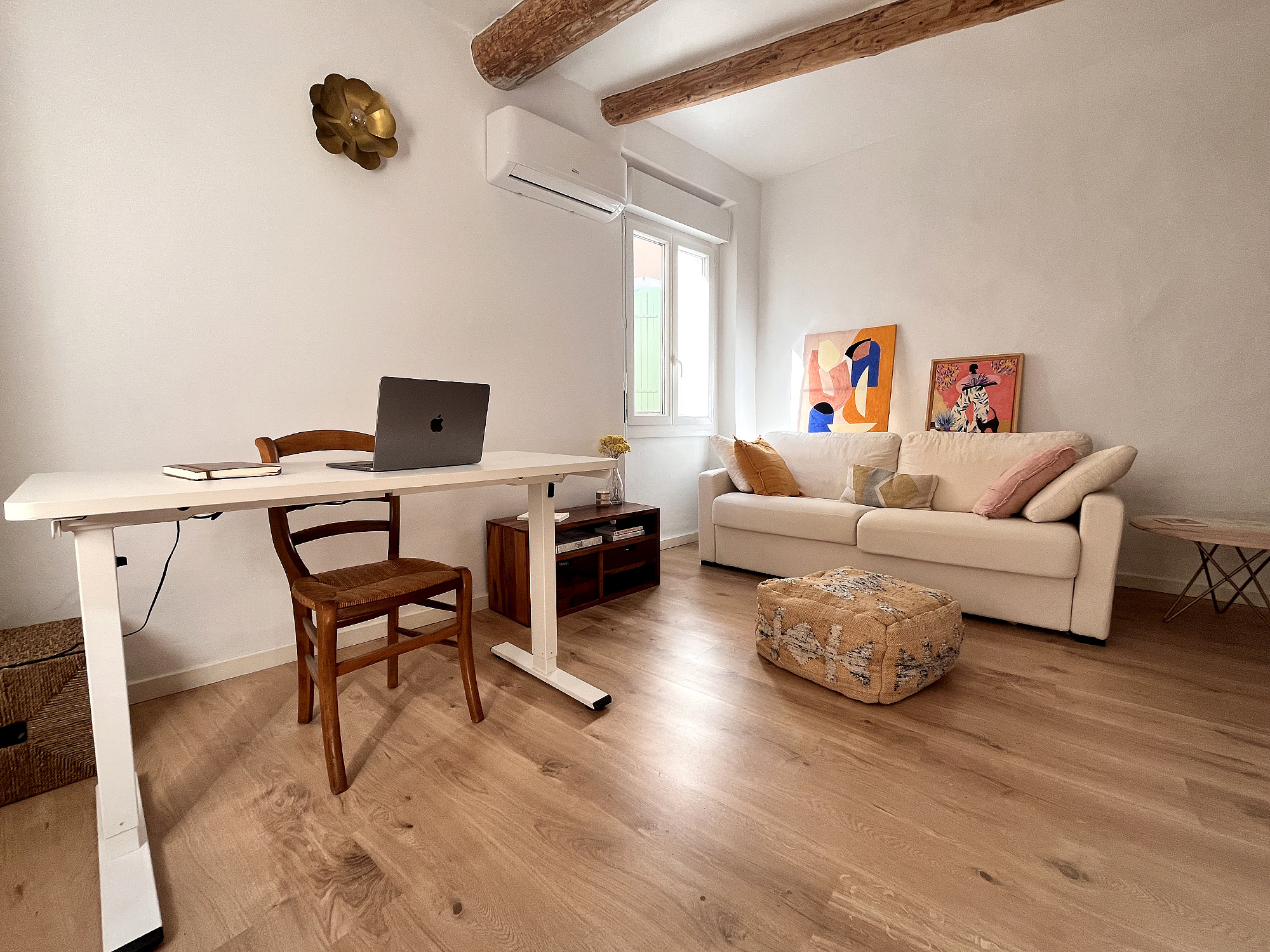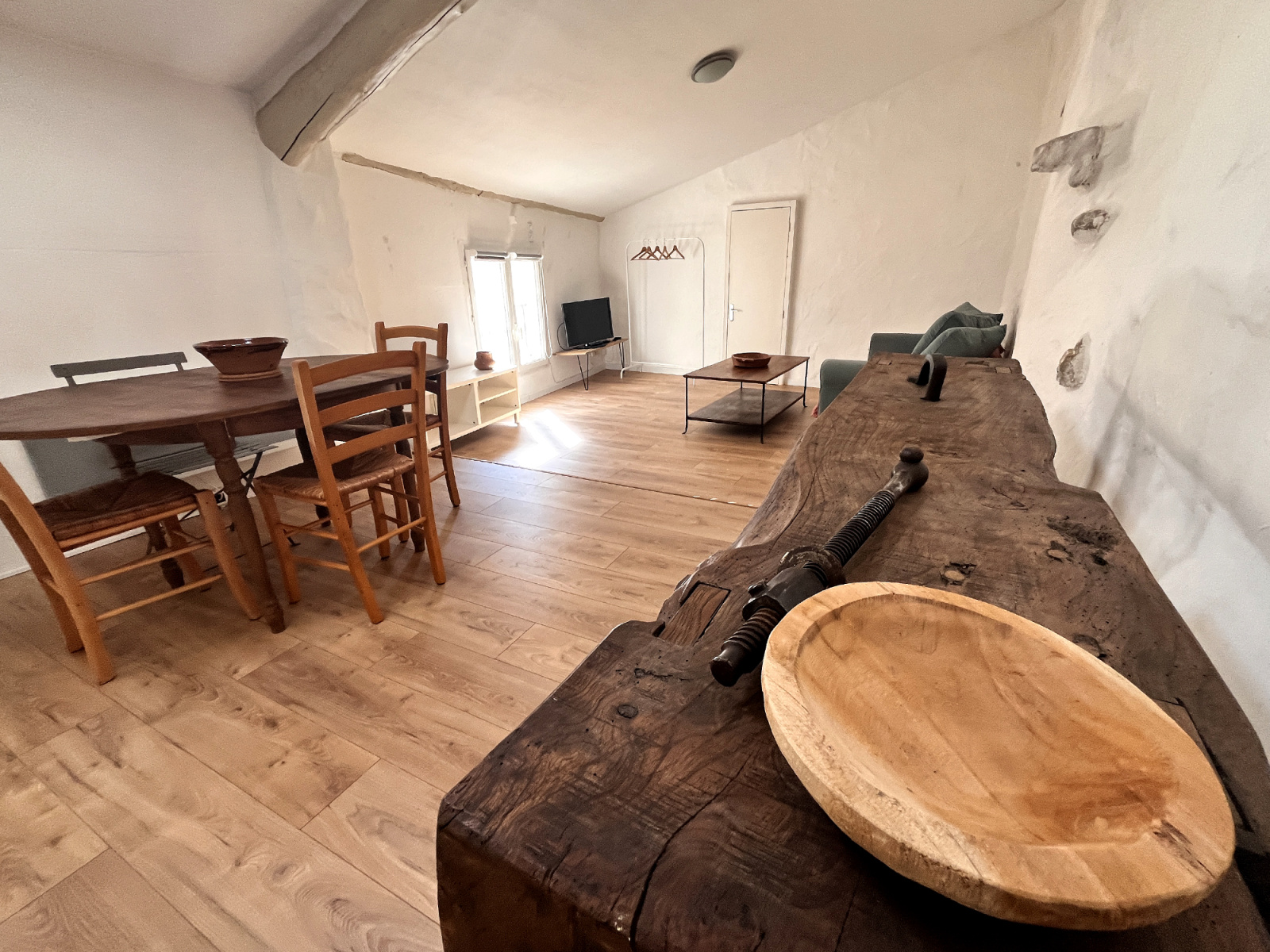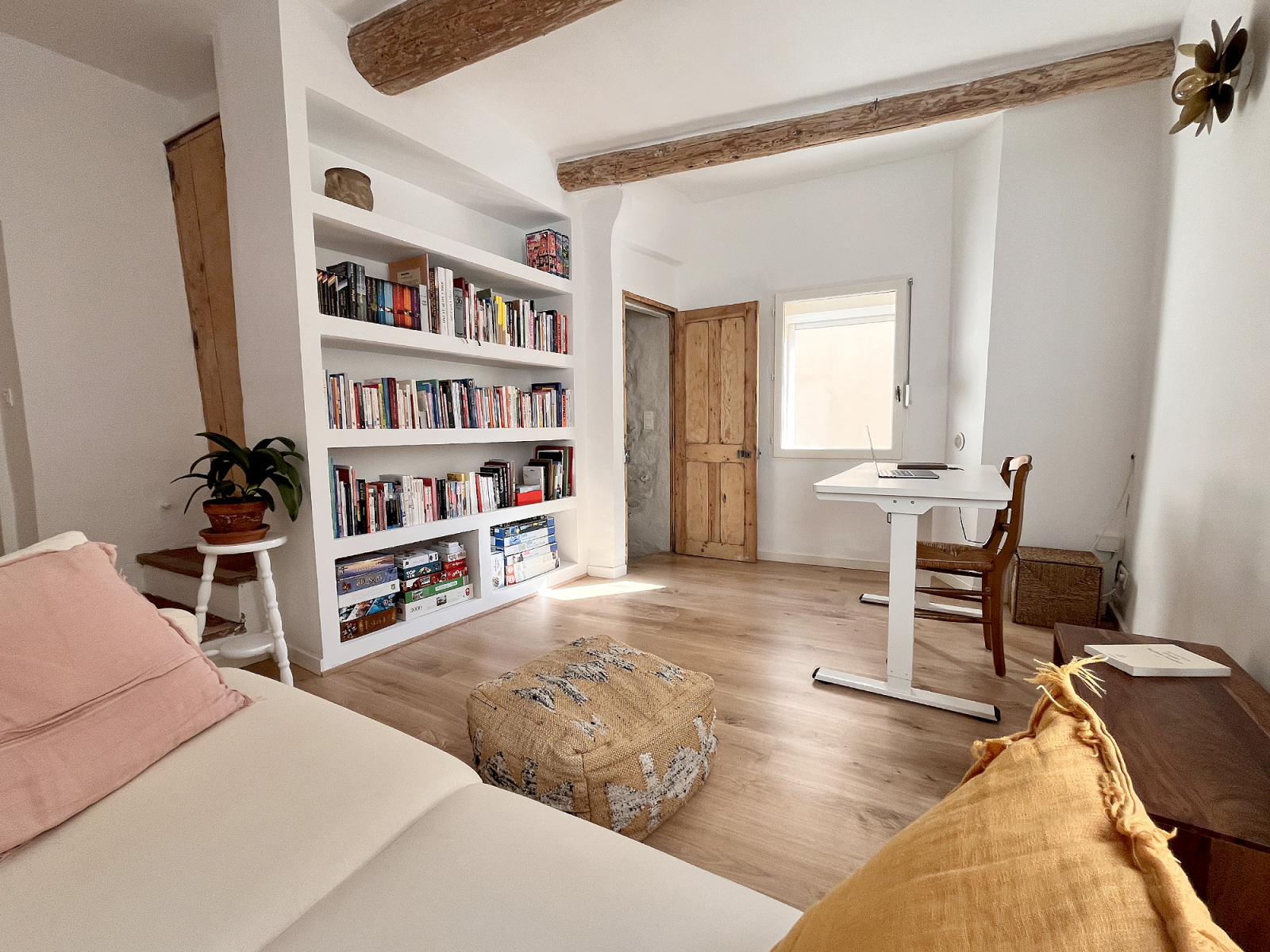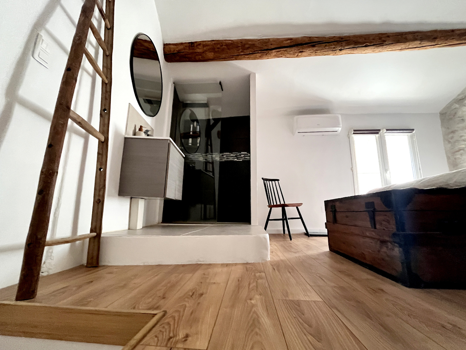 Le gîte a un accès indépendant depuis la même impasse et propose une grande pièce de 30 m² avec son coin cuisine et sa salle d'eau ainsi qu'une chambre.