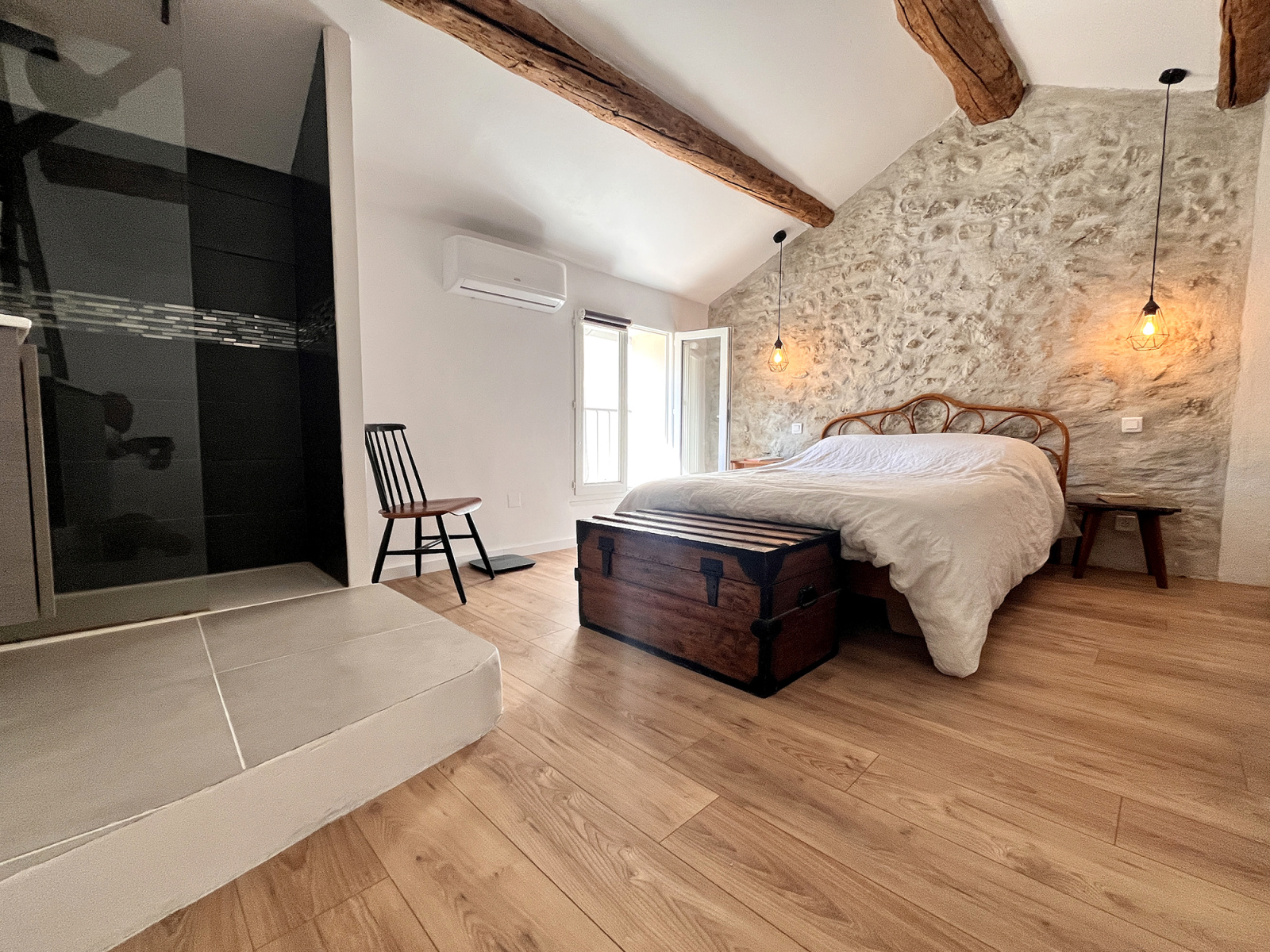 Une maison bien équipée avec sa climatisation réversible, son poele à pellets et ses doubles vitrages qui lui assurent un DPE performant, sans travaux à prévoir et qui permet de bénéficier d'un logement supplémentaire indépendant ou d'une rentabilité locative significative.