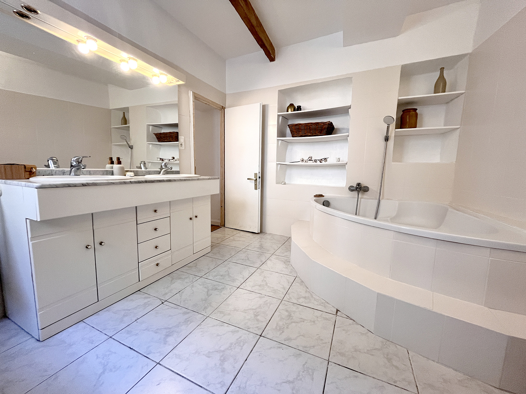 A l'étage, un bureau, une chambre et une grande salle de bains